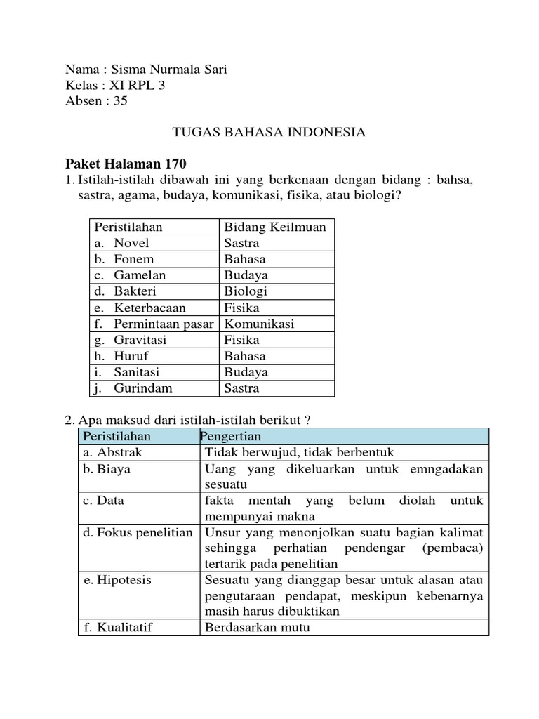 Bahasa Indonesia Kelas 11 Sma Halaman 170 Istilah Bidang Keilmuan Dan Pengertiannya Ringtimes Bali